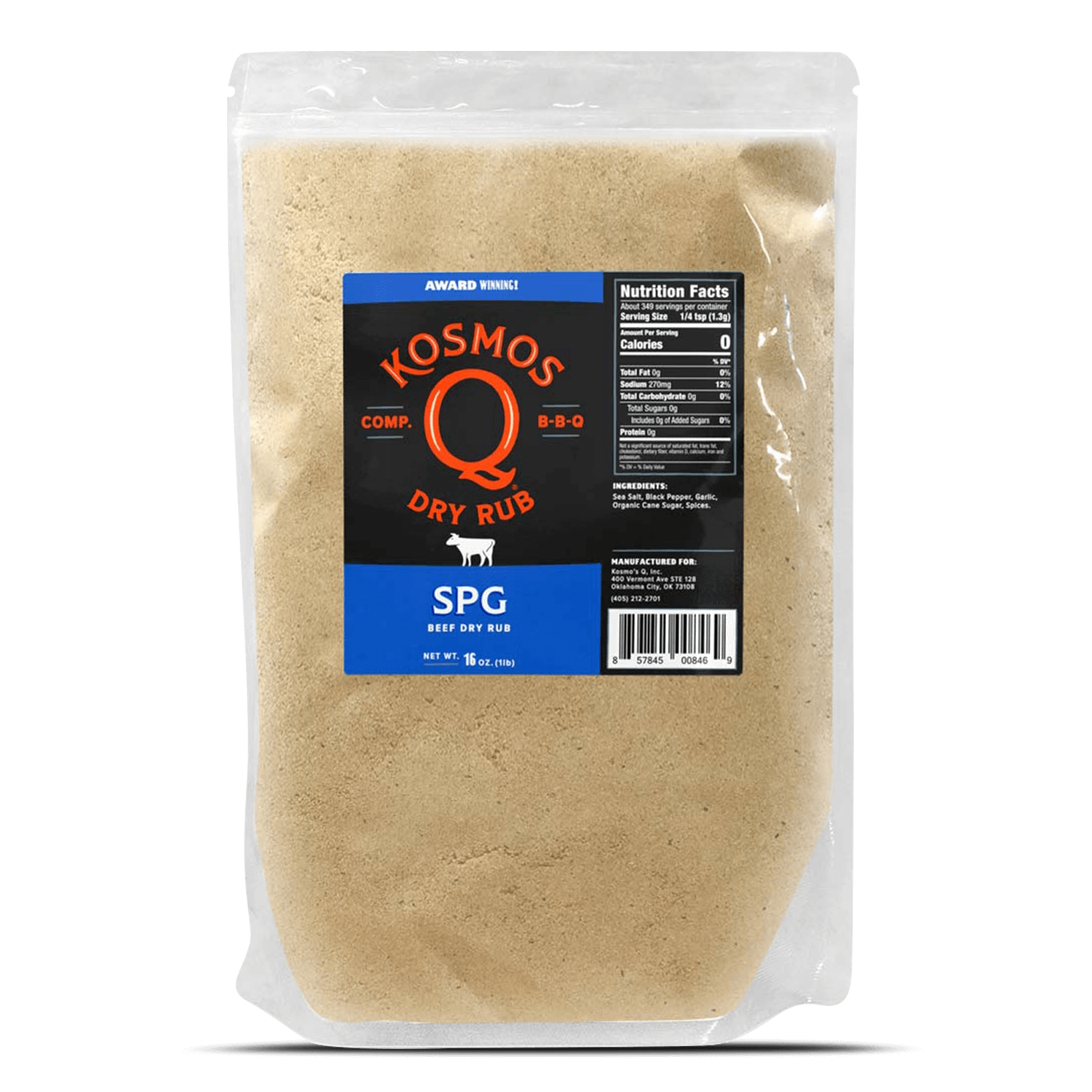 SPG - salt, pepper, and garlic? Don’t think so. Whatever else is in this mix is absolutely delicious! This has become my base rub for just about everything. Layers great with other seasonings or stands strong on its own. Kosmo’s nailed it with this one!