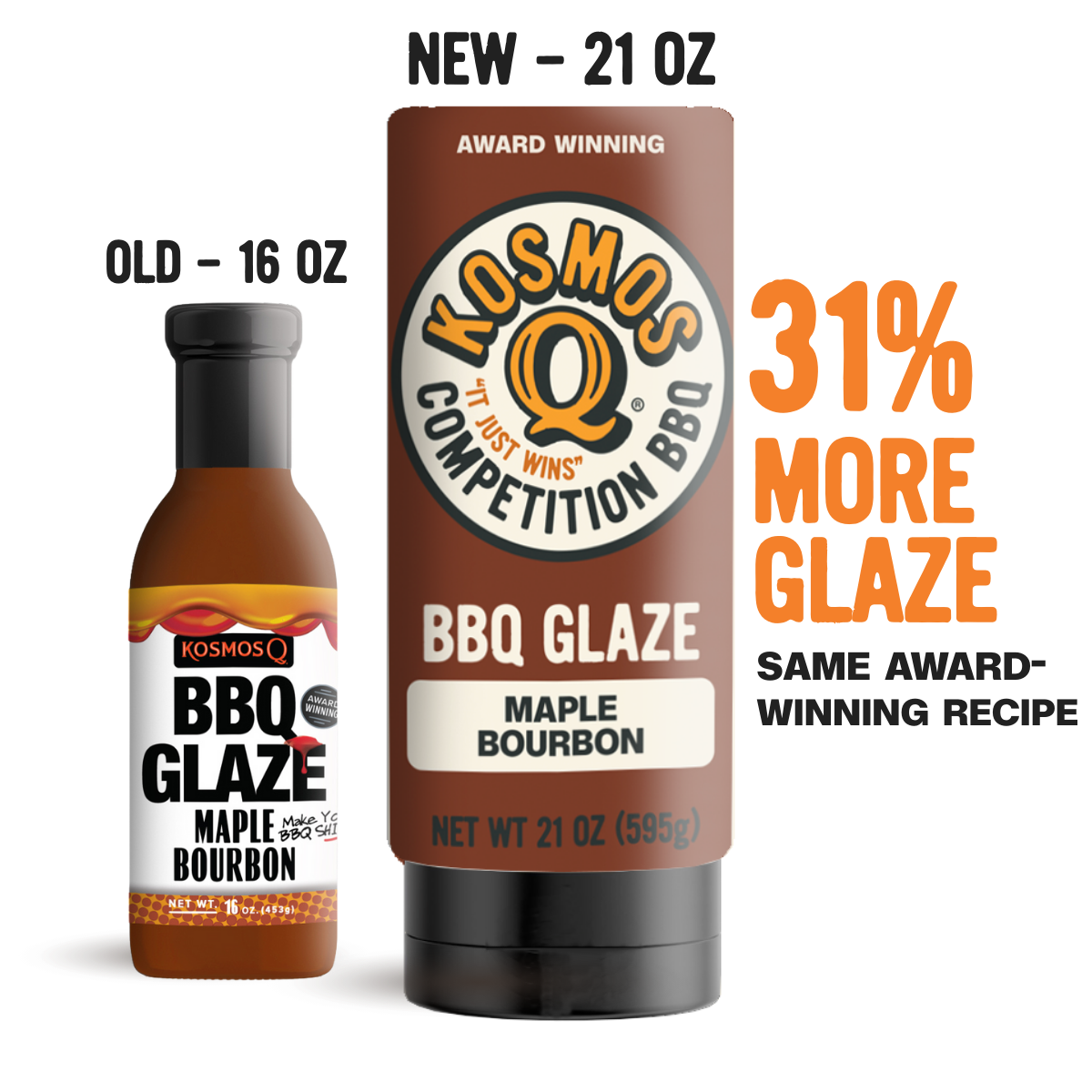 Tastes awesome on ham and ribs…..Never have any left overs when using Kosmo Qs Maple Bourban BBQ Glaze.