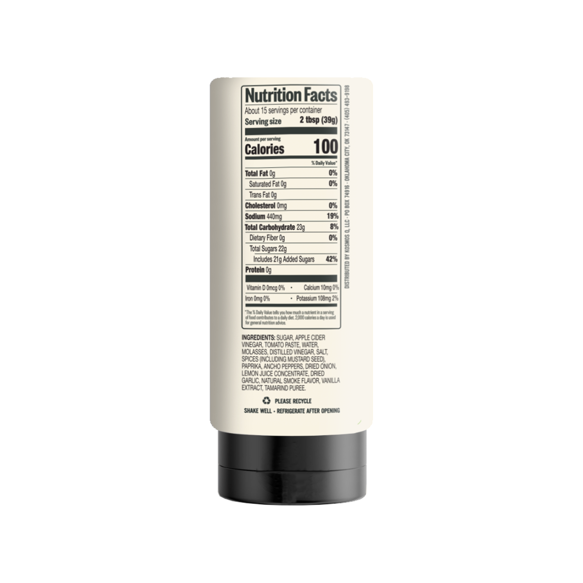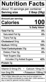 INGREDIENTS: SUGAR, APPLE CIDER VINEGAR, TOMATO PASTE, WATER, MOLASSES, DISTILLED VINEGAR, SALT, SPICES (INCLUDING MUSTARD SEED), PAPRIKA, ANCHO PEPPERS, DRIED ONION, LEMON JUICE CONCENTRATE, DRIED GARLIC, NATURAL SMOKE FLAVOR, VANILLA EXTRACT, TAMARIND PUREE