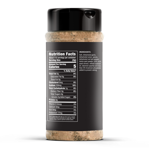 INGREDIENT STATEMENT: Salt, dehydrated garlic, dehydrated onion, spices, dehydrated red bell pepper, lemon peel powder, citric acid, yeast extract, refined soybean oil, oleoresin paprika and less than 2% tricalcium phosphate added to prevent caking