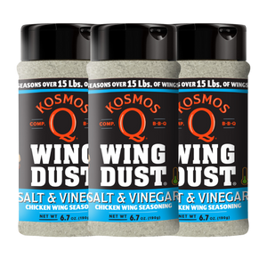 I can’t deny that I sprinkle the Kosmo’s Q, Salt and Vinegar Wing Dust on everything. But when I’m making wings I can impress with I like to use it as a base coat, and top it off with the sweetness from the Honey BBQ!
