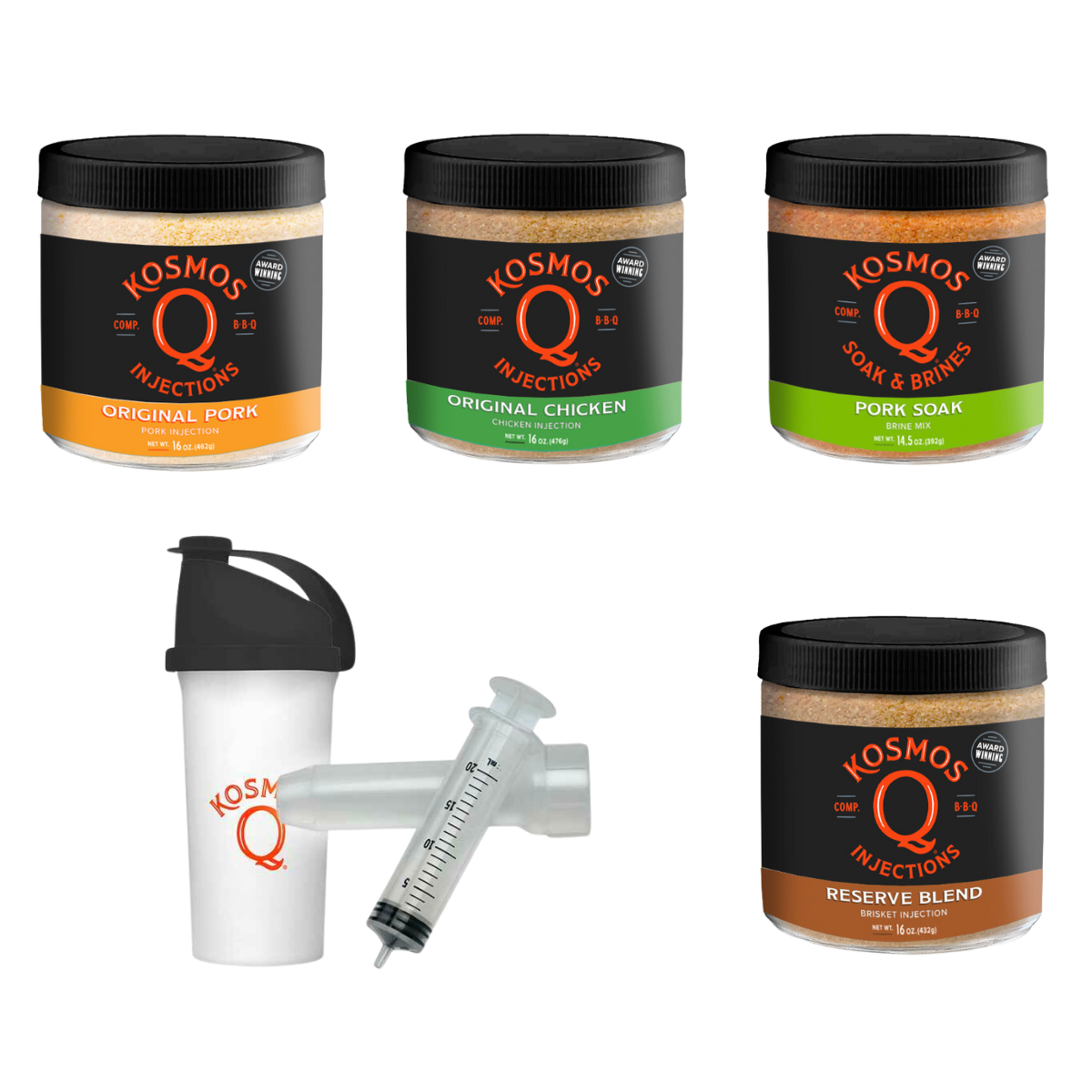 Start off your next competition with one of the most awarded combinations of products on the market. In this package, you will receive 1- mixer, 1- 20cc syringe and needle, 1-lb Reserve Blend Brisket Injection, 1-lb Pork injection, 1-lb Pork Soak - Brine, and 1-lb Chicken Soak - Brine. Cook like the pros with this powerful combination!